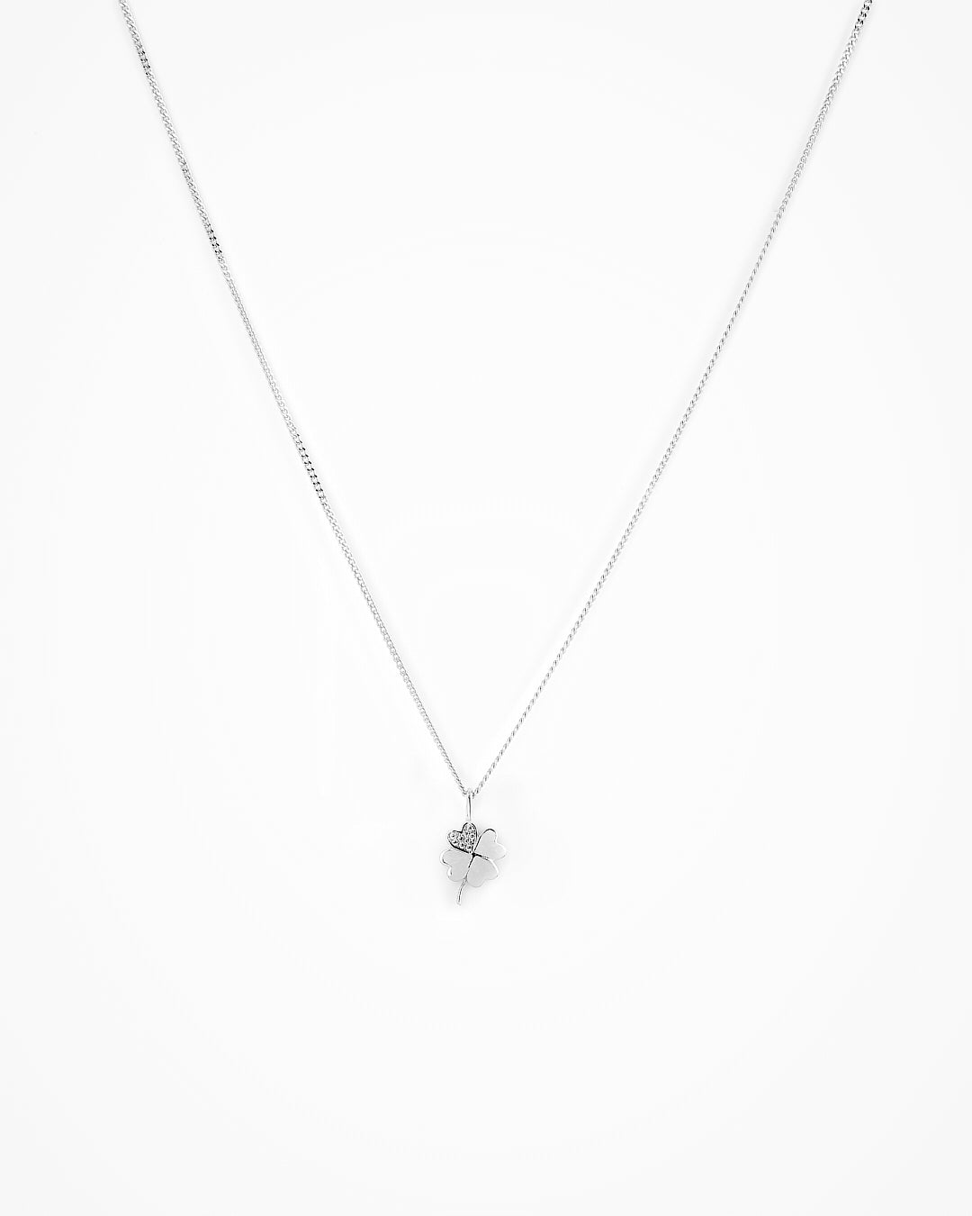 Clover Pavé Necklace Silver