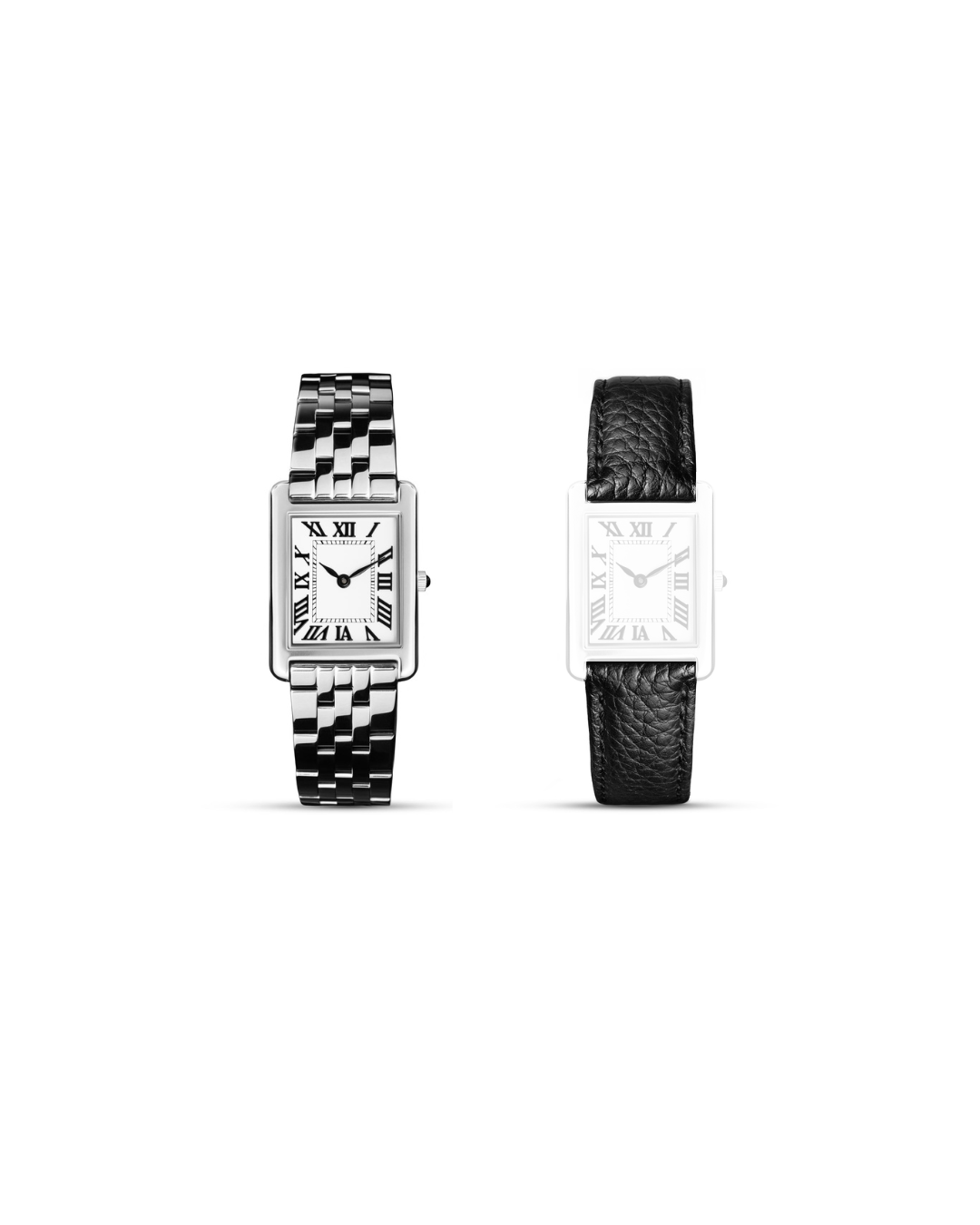 The watch comes with two interchangeable straps – a stainless steel bracelet and a black leather strap with silver details – both equipped with a Quick Release function, allowing you to easily switch styles to suit any occasion.