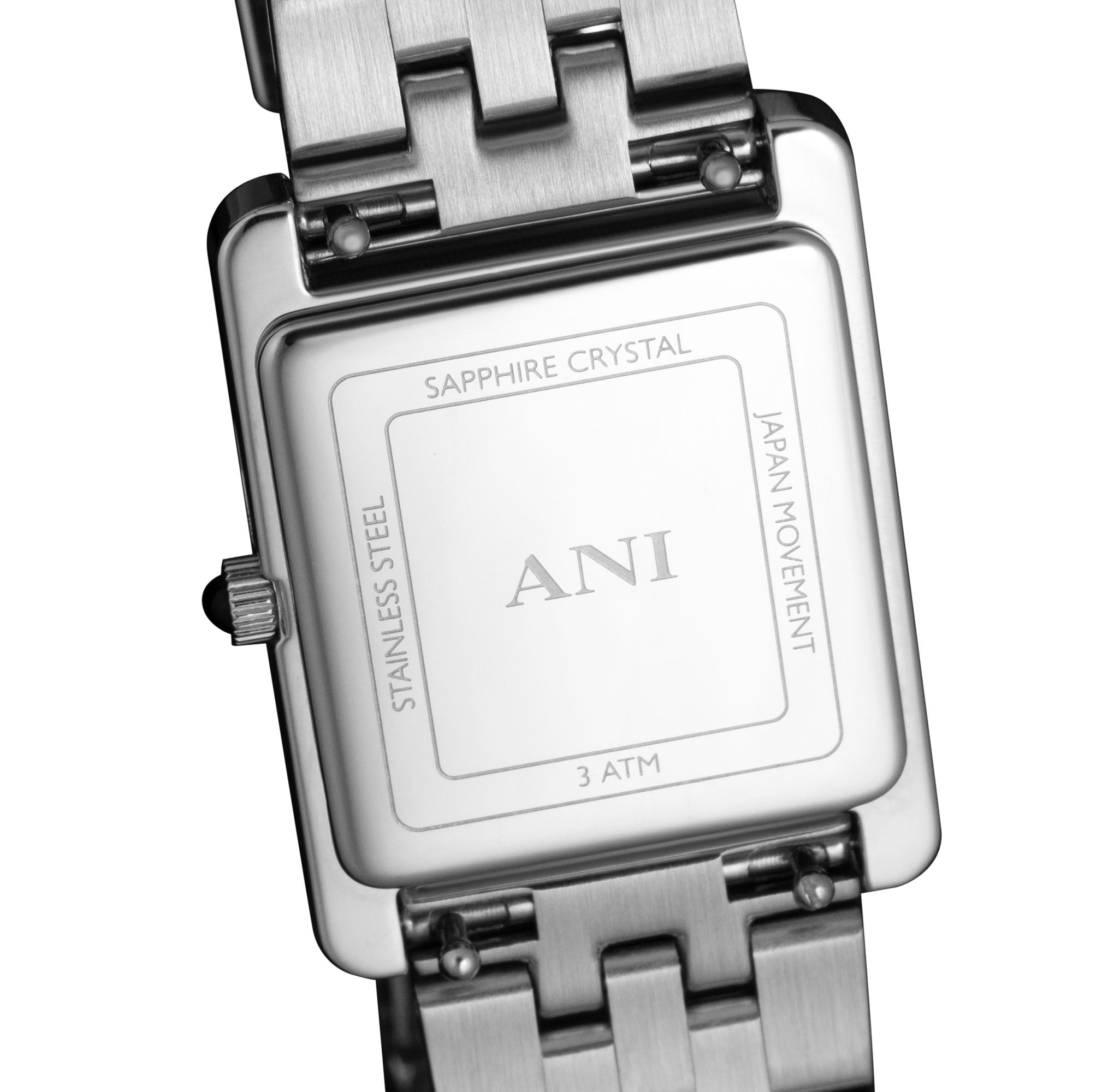 Please note that the steel link comes in a standard length. Any necessary adjustment or link shortening should be carried out by a watchmaker or authorized retailer and is not covered by ANI Jewels.
